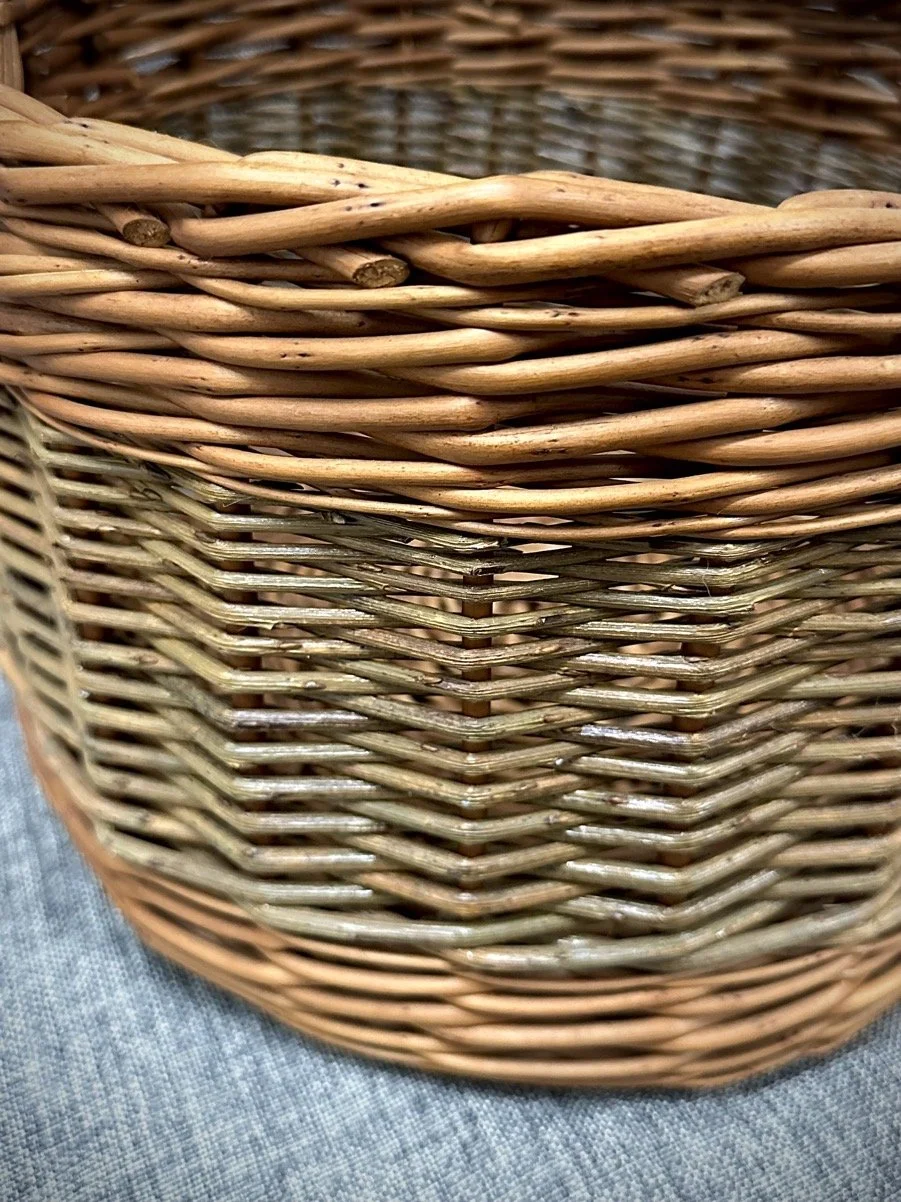 This particular basket is woven from Buff Willow with a Black Maul infill.